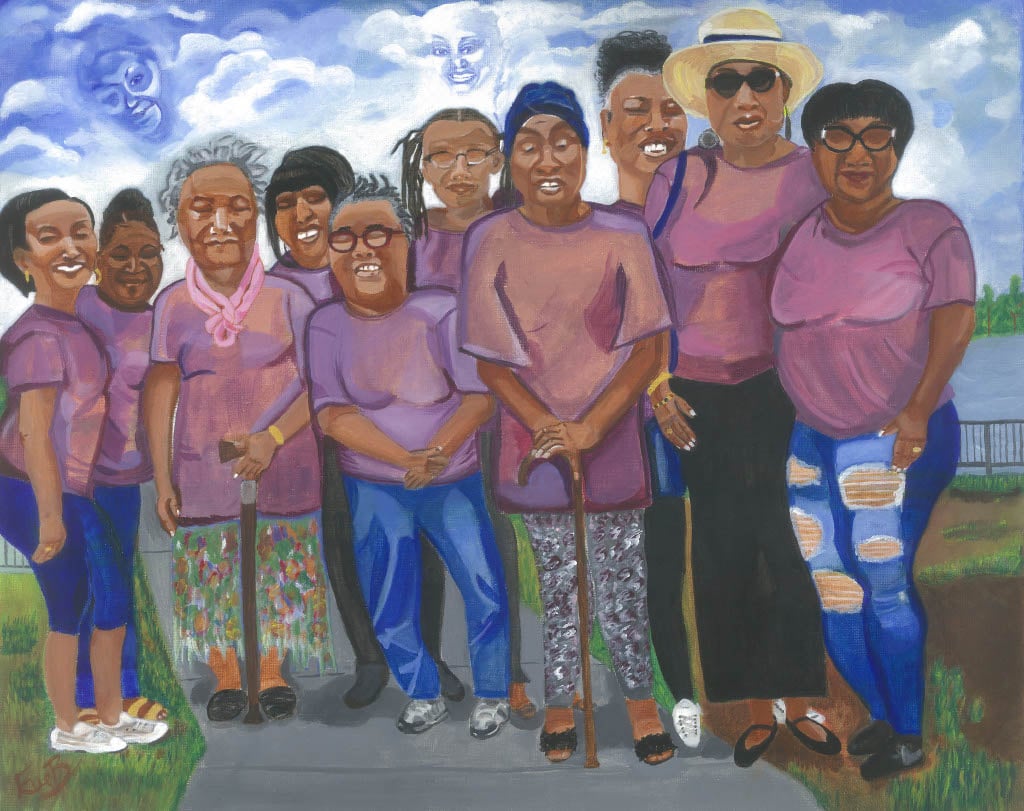 "Fulfilling Elnora's Wish"/ "Women Folk Unite" Available in Reproduction prints. Original 16x20 on canvas using acrylic paints. Limited edition.